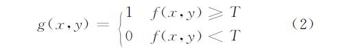 設輸入圖像為f(x,y),輸出圖像為g(x,y),用得到的分割閾值T對圖2(a)進行處理,得到圖2