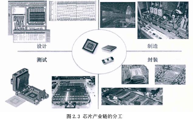 LED顯示屏芯片制造業屬于高風險高投入高收益的“三高”行業。入行門檻較高,但隨,著國家對集成電路行業的大力投入和支持,許多芯片設計公司紛紛成立,其根本的生命力在于它可以大批量、低成本和高可靠地生產。比如,集成電路芯片的價格約為10-100美元,而生產線的投資卻高達10-15億美元(200mm,0.1 8um),隨著工藝不斷向著深亞微米級發展,目前已有28nm的生產工藝,投資會越來越高。為了滿足市場的發展需要及降低芯片的生產成本,如圖2.3所示,市場上出現了芯片制造產業鏈的分工,主要包括設計、制造、封裝和測試四大部分。